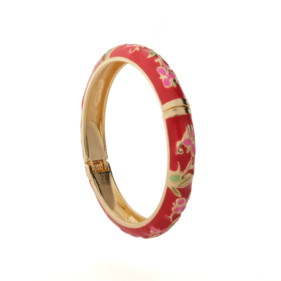 Kırmızının enerjisini ve çiçeklerin zarif dokunuşunu bir araya getiren Crimson Bloom bileklik, canlı ruhunuzu bileğinizde taşımanız için tasarlandı. Altın tonlarıyla bütünleşen pembe çiçek detayları, günlük stilinize romantik ve sofistike bir hava katıyor. Hem özel günlerde hem de günlük kullanımlarda fark yaratan bir aksesuar.