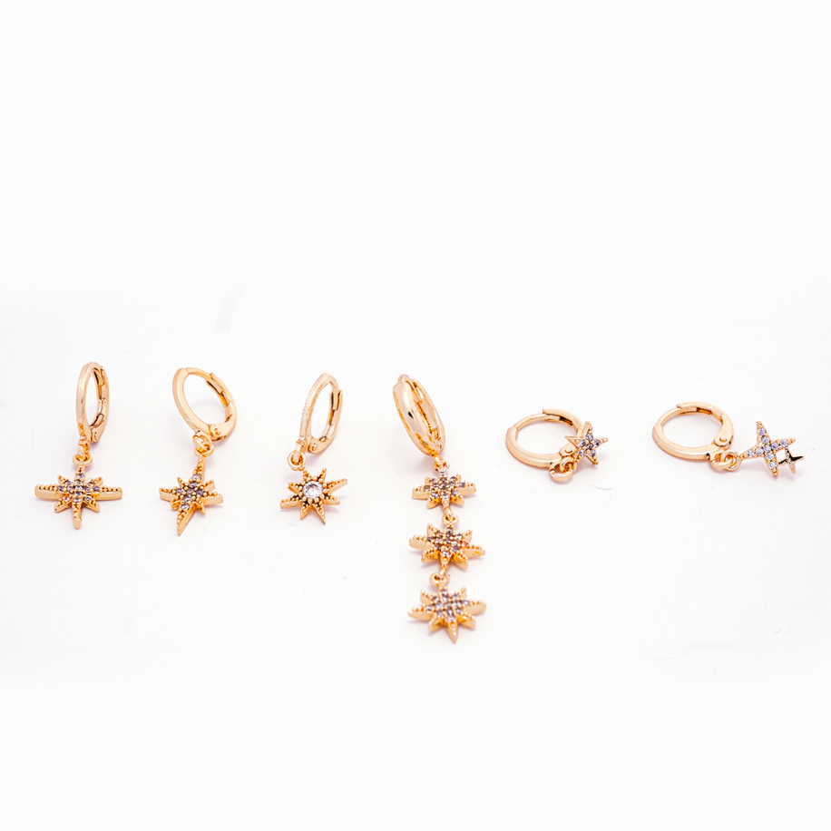 Gecenin ışıltısını stilinize taşıyan Stellar Shine Küpe Seti, farklı boyut ve tasarımlardaki yıldız detaylarıyla zenginleştirilmiş 6 adet tekli küpeden oluşur. Her biri ayrı ayrı kullanılabilir veya kombinleyerek çoklu piercing stilinize uyum sağlar. Göz alıcı taş detaylarıyla minimal ama etkileyici bir görünüm sunar.